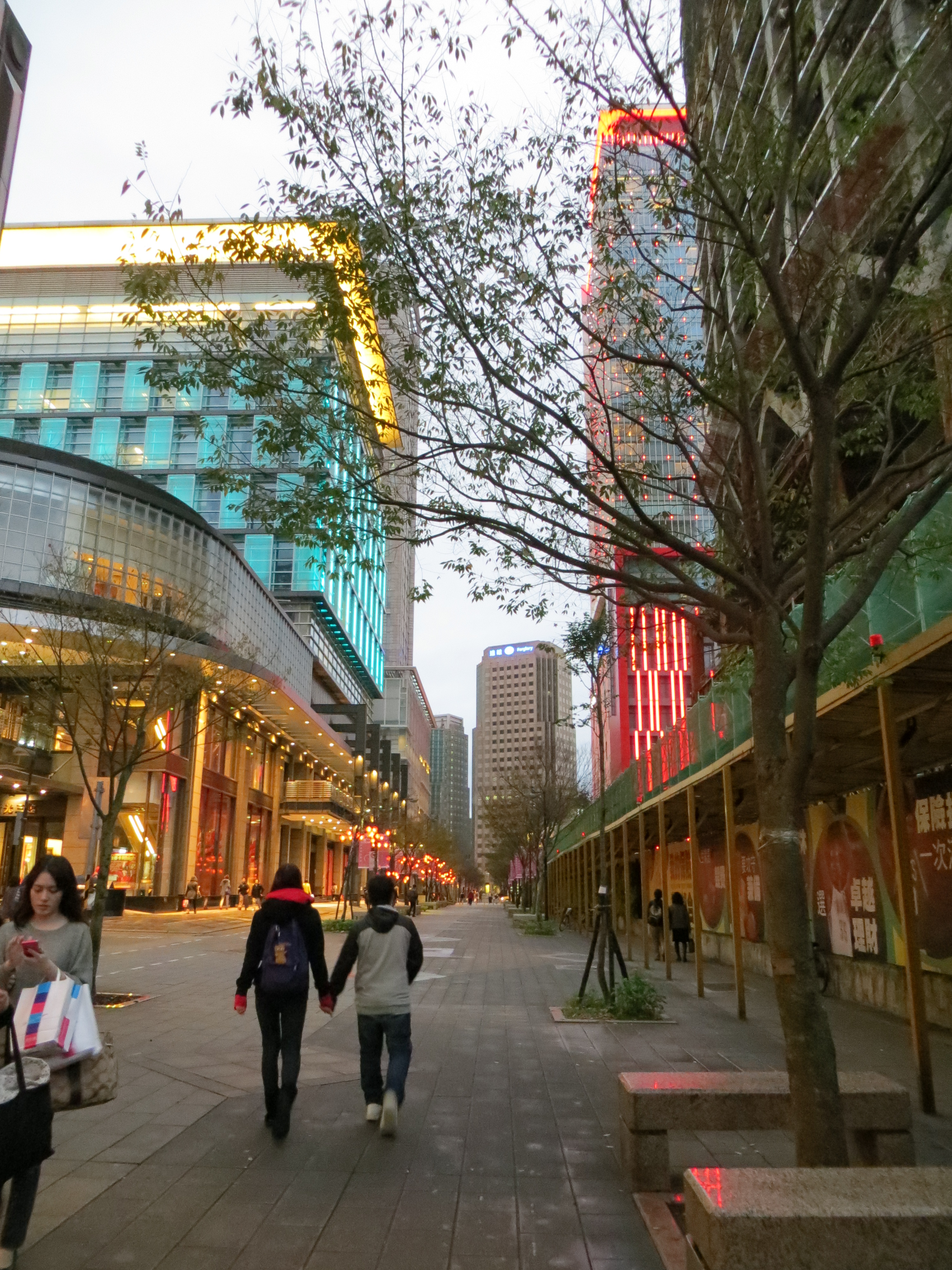 V okolí 101 najdete spoustu mladých lidí. Většinou tady nejsou kvůli nákupům, ale kvůli filmům, které se promítají ve velkých komplexech kin kousek od mrakodrapu. Držení za ruce, které není na Taiwanu stále ještě běžné, se tady přechází bez povšimnutí. Normálně pár dává ukazuje to, že patří k sobě tím, že muž nosí ženě kabelku (a to bez ohledu na to, jak růžová nebo třpytivá je).