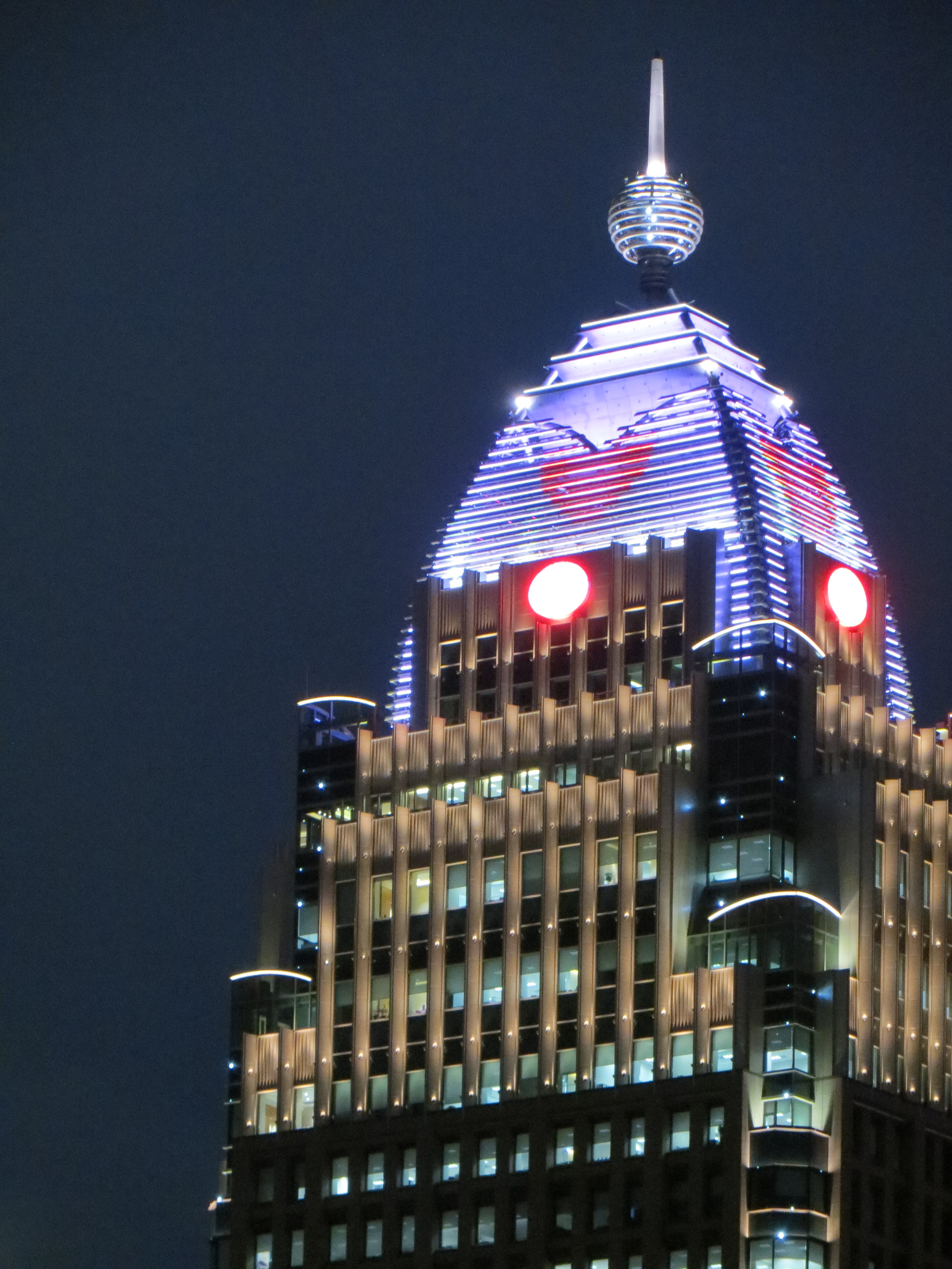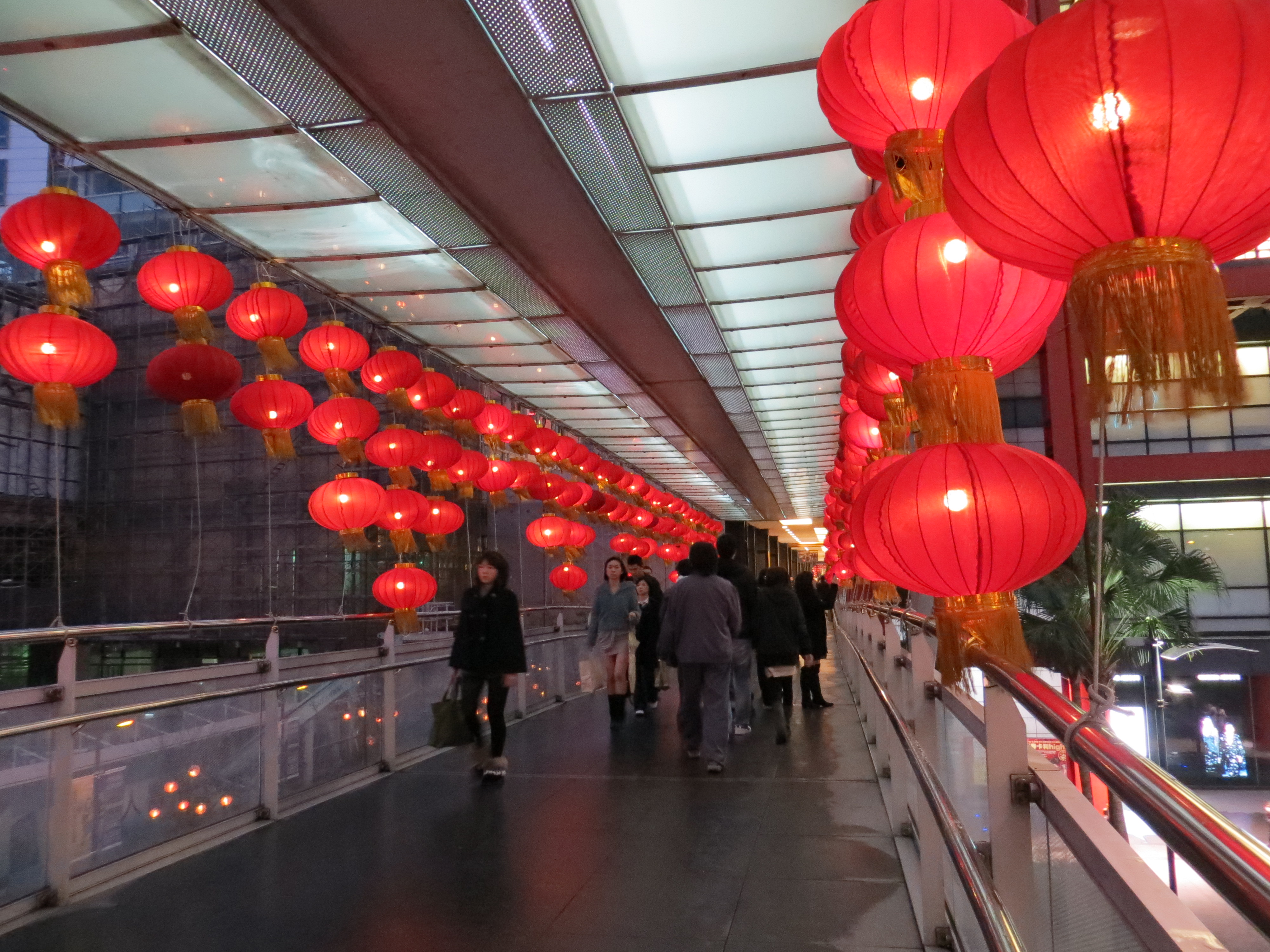 Moderní osvětlení na mrakodrapech je zkombinované s tradičními červenými lampióny. Výsledek můžete na následujících fotkách posoudit sami.